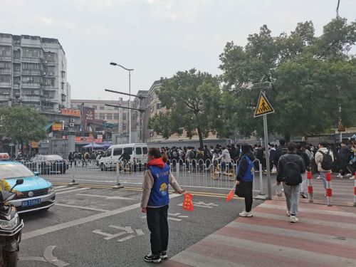 活动中,志愿者在马路两侧和中间形成人墙,进行交通疏导,使行人与车辆高效地配合,提高交通效率的同时也减轻了交警叔叔的压力。在等待过马路的时候,同学们普遍不愿向前走一走,使得交通效率有所降低,加之行人和车辆较多,不方便规范,志愿者们便拿出了小喇叭,播放起了提前录好的音频:“请同学们往前走一走,谢谢大家配合。”这个方法可以说是非常有效果了,既方便了工作,又提高了效率,为志愿者们的聪明机智点赞 。