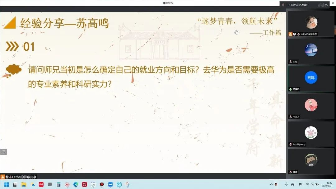 研究生会承办的湖南大学“逐梦青春,领航未来”毕业生就业经验交流分享会,以线上访谈会的形式顺利举行。