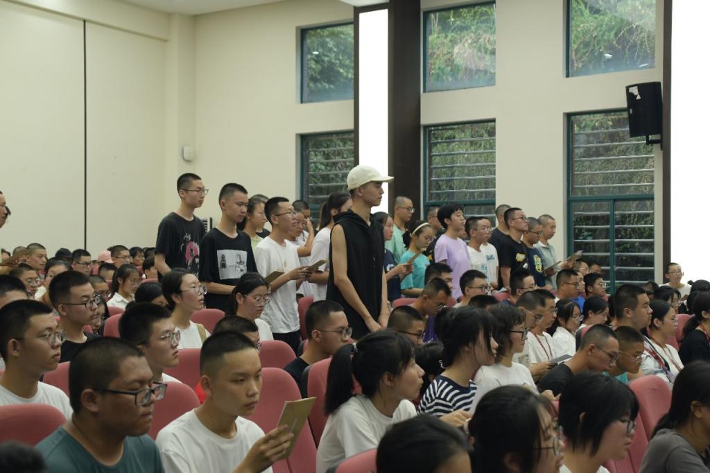 最后,全体同学进行了大合唱。即使歌词没有记熟,但每个人都在用自己最嘹亮的歌声去赞美湖大,展示自己对湖大文化的自豪之情。