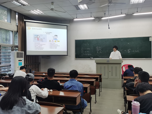 随后,王才荣同学为大家介绍了实验室中可能存在的安全隐患和实验室防火自救的基本常识,让同学们注意一定要严格按实验规程操作,还强调了干粉灭火器、二氧化碳灭火器和泡沫灭火器分别适用的场合。在会议的最后,王才荣同学呼吁大家关注“湖大安全在线”公众号,学习不同场合的防火知识、火场自救与逃生常识等,增强自己的防范意识,共同营造平安校园。会议结束后,化工1902班岳宏宇同学分享了他的想法:“我们身边存在着很多的消防安全隐患,火灾无情,一旦发生,从各种意义上来说都是毁灭性的,所以消防还是要以预防为主,我们应该多学习消防安全知识,让消防安全知识长留心中”。