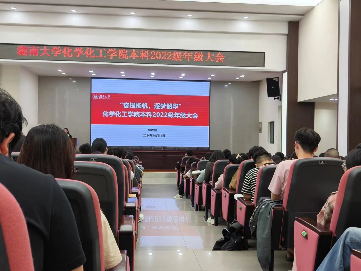 本科 2022 级年级大会暨考研指导会在新化工楼D区顺利召开。本次会议由化工院2022级辅导员何妮翰主持,2022级全体本科生参加,化学2202班班主任宋春兰、化学生物学2202班班主任代晓霞、化工2201班班主任陈如出席。