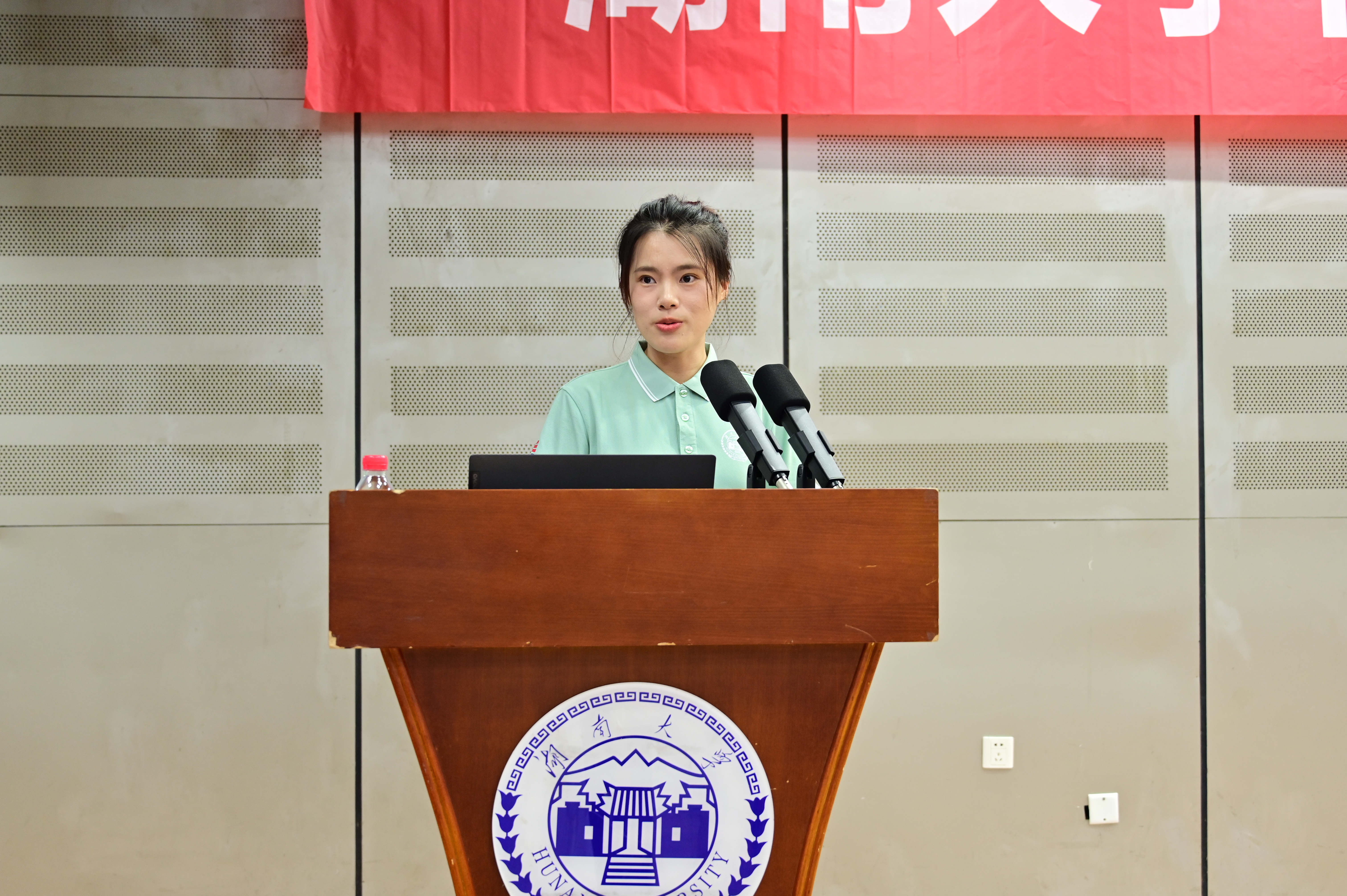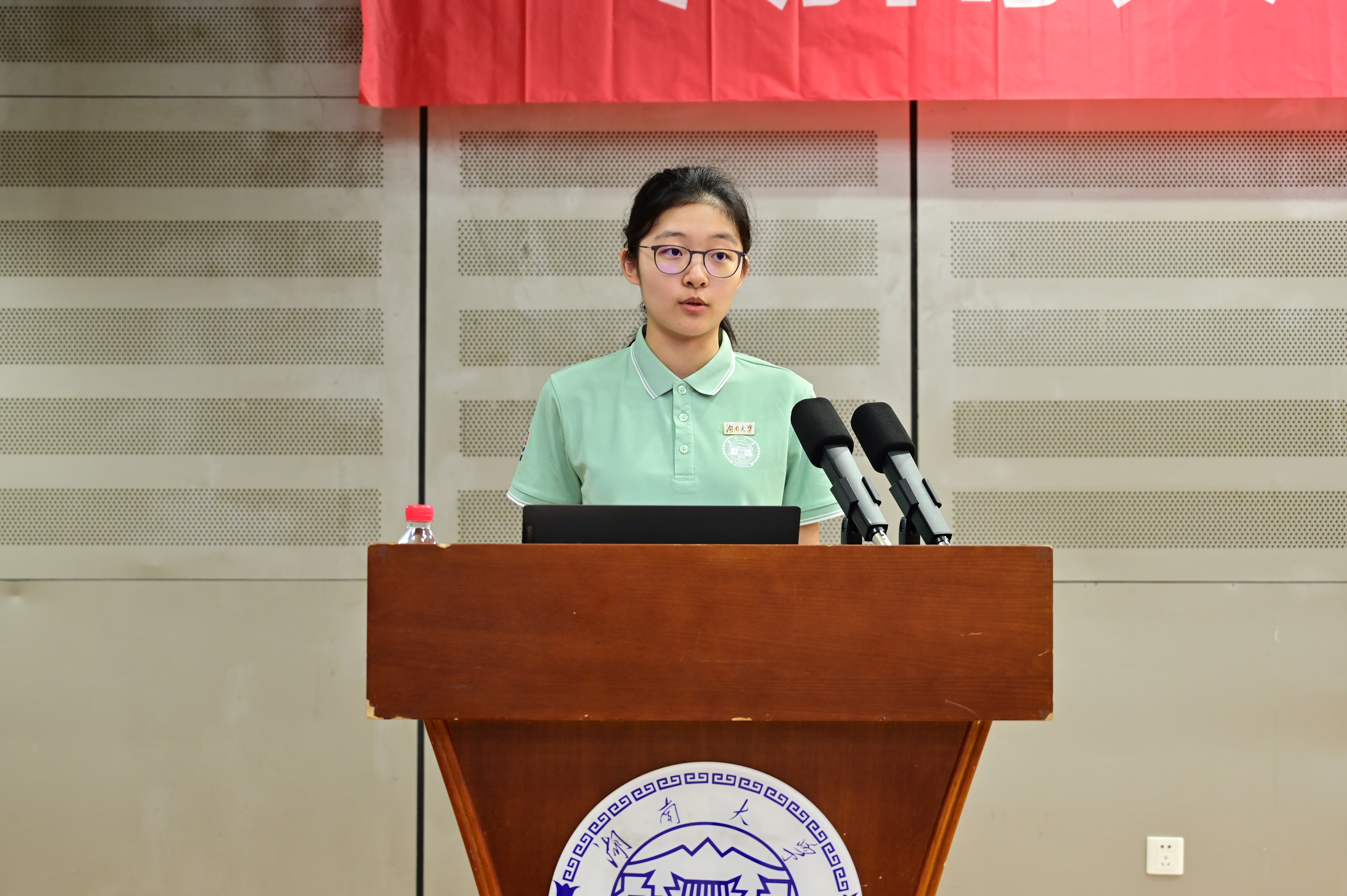 化学类2501班本科新生代表苏高樱子分享了自己与湖南大学的特殊缘分,追随姐姐脚步,选择同样踏上湖大化院这片沃土。她谈及化学独特的逻辑之美与创造之美,言语间满是对这门学科的向往;同时明确大学四年的奋斗方向,字里行间洋溢着站在新起点的激动与期待。她向同学们发出倡议:既要接续传承抢庄牛牛官方网站