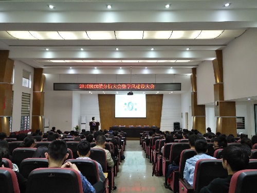 16级在化工院报告厅举行了2016级成绩分析大会暨学风建设大会,16级全体成员在参加了此次大会,与会的领导老师有:化工院党委副书记陈义红老师,化学1602班导师王青老师,化工1601班导师夏新年老师,16级辅导员刘王楚齐老师。本次大会共分为5个部分,由年级长陈简同学主持。