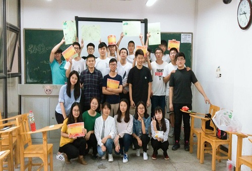 最后,进入了活动的最后一个环节,每个小组以“化工1602班”为主题做一副画。该环节中,每个小组中的各个成员都在积极地将自己心中的化工1602表达出来,和组员们相互讨论,形成了自己组的特色。其中,刘王老师组将化工的“化”进行了意象化,里面包含了化字的象形文,化妆的女生,化学反应引发的迷雾,还有形似“化”的老鼠。刘切同学组把化工生产中要用到的一些器件、工具、设备进行了连接,构造成了一个“工”。许睿玲同学组将“1602”用四种不同的事物进行联系并表达出来,他们将花比作一,六氯代环烷烃延长一根键当作六,摩天轮作零,天鹅与橘子洲当作二,又把班长与团支书用简笔画表示出来。王子恒小组用彩虹将乌云与白云联系起来,以及从花房中生长出来的花朵,与其中的“班”字形成呼应。这样四副画便构成了“化工1602班”,每个同学都亲手表达了自己对班级的理解。