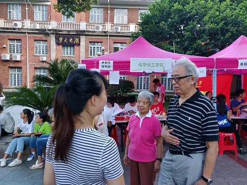 校长段献忠和俞汝勤院士等几位领导走访了化工院在东方红广场设立的志愿服务站点。在支援点处,校长对志愿者的服务态度表示满意,也鼓励志愿者们再接再厉,站好每一班岗,服务好每一位新同学。随后,校长也与化学系主任赵万祥老师和2018级辅导员南彬老师进行了亲切交谈,希望他们能够将化工院的迎新工作做的更好,再上一层楼。