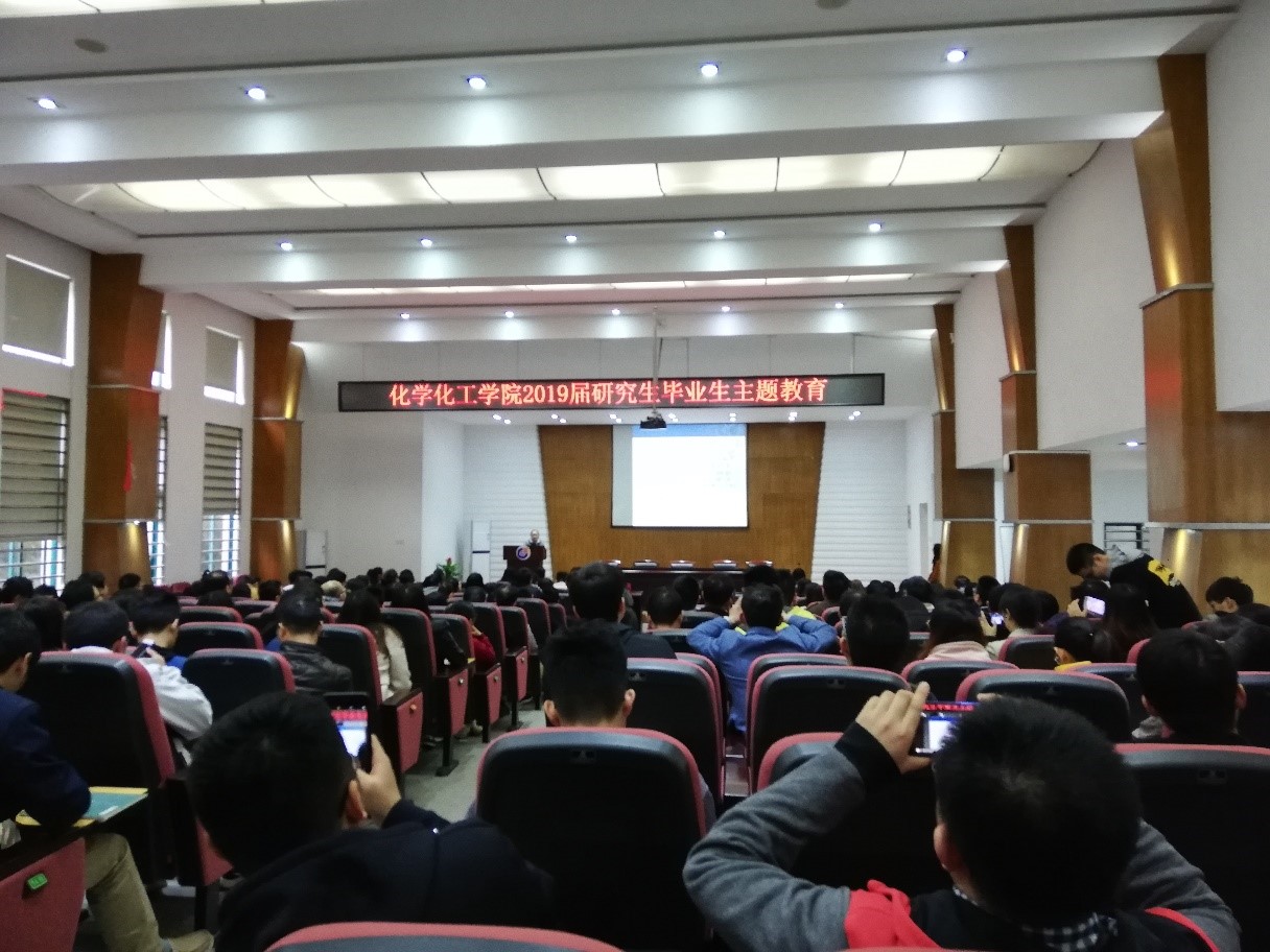 在新楼D区报告厅举行了研究生毕业生主题教育活动,该活动围绕“毕业答辩流程说明”、“毕业各类事项说明”两大主题展开,对研究生毕业相关事宜进行了说明介绍。参会人员主要有研究生秘书曾芳老师、研究生辅导员何妮翰老师以及全体19届研究生毕业生。