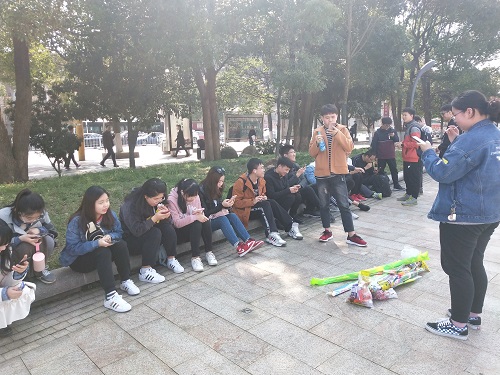 下午3点半,同学们已经全部到达活动地点——楼牌路。此次活动共分为二大板块:“爱国知识竞答”与“户外烤串”。