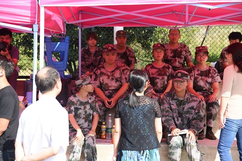 另外,老师们还到各排面向教官们送以冰镇红茶表示感谢,并告诉训练的同学们应当认真对待军训,感激教官。“师者,所以传道受业解惑也。教官也是你们的学长学姐,和大家保持着“亦师亦友”的融洽关系。对待训练,他们很严肃;对待大家,他们很严格;对待自己,他们很严苛。大家应该珍惜这段日子,感谢负责的教官们。”