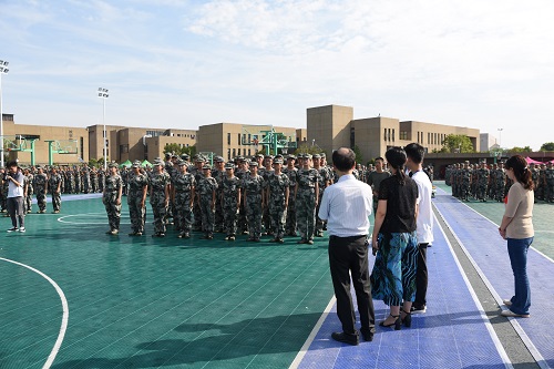 党委书记王玉枝,院长张晓兵和院党委副书记范媛吉到军训场地看望2019级军训新生。
