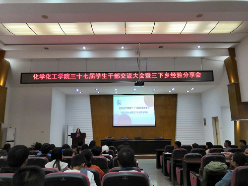 第三十七届学生干部交流大会暨三下乡经验分享会”在化工楼D区报告厅隆重举行。本次会议由院团委副书记秦柳主持。