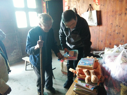 这次看望老人考虑到山里交通不便,老人平时买生活用品也十分不方便,党员同志们提前给老人一家买好了冬天御寒的衣服鞋帽、被褥毯子等生活用品,给正在上学的重孙还买了图书、彩笔、本子等学习用品以及玩具,送到老人一家手里。听闻山上很久吃不上肉类,支部成员特地在山下买了新鲜的猪肉送到老人家中,希望改善老人一家的生活质量。