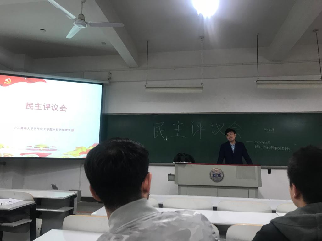 首先,由党支部副书记陈简同志传达本次会议精神,并简要介绍会议流程。在新发展的八名同志为大家朗读了民主评议会具体实施方案及要求后,由党支部副书记陈简同志带头开始进行民主评议党员。作为正式党员,各位同志从自身理论学习、专业学习、学生工作等各方面进行批评与自我批评。多数同志表示自身理论知识学习不够深入,仅仅停留在表面;学习强国的学习还需更加用心,应把重点应放在提高觉悟而非注重分数;党支部的活动建设应更加丰富多彩,以提高同志们的参与积极性。其他党员同志根据自己的日常观察及接触对其进行评议批评,提出了改进的具体建议,同志们互相学习、交流借鉴,使每一名党员同志在政治素质、思想素质上得到一定提高。