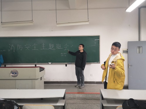 号召,加强消防安全工作,化工1803班在综合楼举办了“消防安全”主题班会。本次班会由生活委员郑博文同学主持,化工1803班同学全部参加。