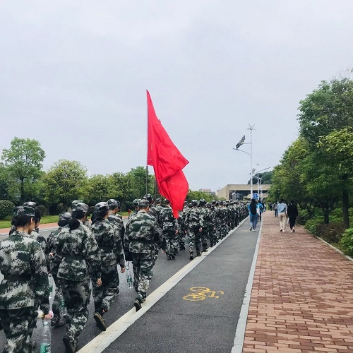 的新生们于荫马塘集合整队,化工院2020级辅导员宋天棋、各排面教官以及各班新生班助理全程参与,顺利完成了十五公里的列队行军。