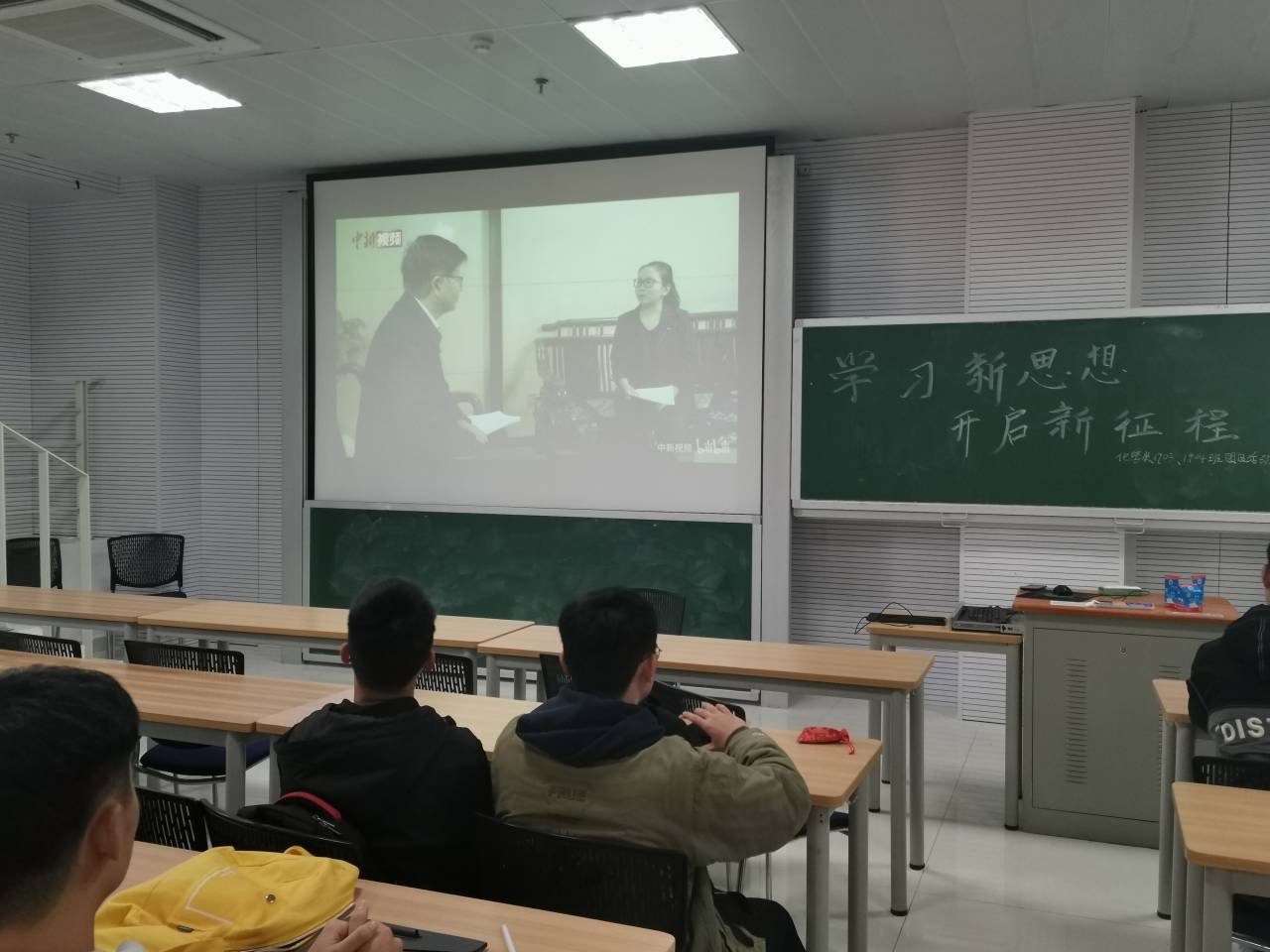 下午14点左右开始,同学们陆续进入203室,并找到对应位置入座。14点30分,参加活动的同学已悉数到场,“学习新思想,开启新征程”联合主题团日活动正式开始。会议由化学类1903班团支书盛韧同学与化学类1904班团支书许华宇同学共同主持。本次联合团日活动分为三部分,三部分内容均由两位会议主持人共同主持。