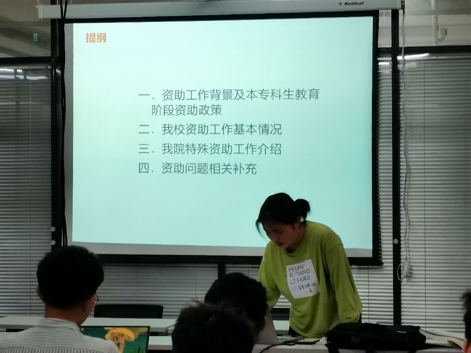 资助工作宣传讲座。本次讲座由爱心使者王亚楠同学主持,化工2002班全员参与。