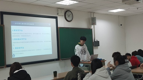 陈林凯同学在PPT中详细为同学们介绍了相关资助项目以及资助金额。让同学们更清晰的了解资助方法与资助过程。充分向同学们说明了抢庄牛牛官方网站