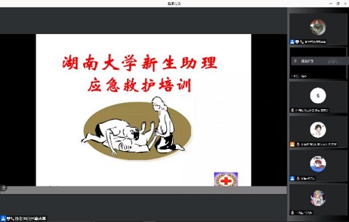 联合举行,培训内容主要围绕应急救助的基本方法以及疫情防控知识展开,钱桂银老师综合运用图文事例为大家生动讲述了新冠病毒预防、心肺复苏基本手段及面对中暑、溺水、气道异物梗塞、狂犬病、创伤的应急处理办法,以提高学生助理的急救意识和自救互救能力。