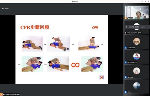 2021级学生助理应急救护培训通过腾讯会议举行。本次培训由应急救护师钱桂银老师主讲,钱老师从新冠病毒预防、救护新概念等方面为大家展开培训。
