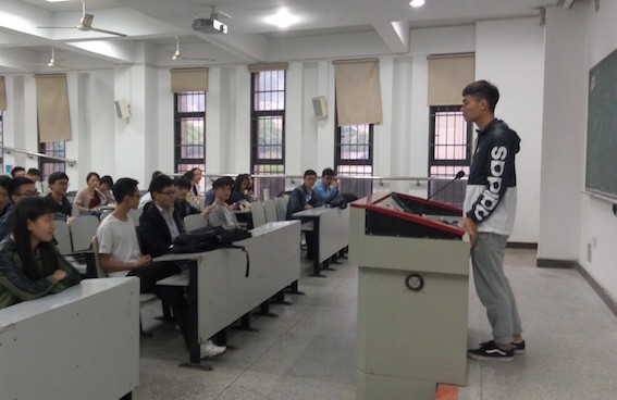 最后,化工一班班长付浩樾就当前国内外的形势,分析了爱国的重要性。班长指出,当前国内正处于社会转型时期,经济增长放缓。近年来,中国周边安全局势又出现了一系列新问题。然后他以周恩来等人的典故鼓励大家,现在正是国家需要的时候,要为中华之崛起而读书,为实现伟大的中国梦而奋斗。在场的同学们受到了鼓舞,也开始对自己如何爱国产生了一些新的思考。