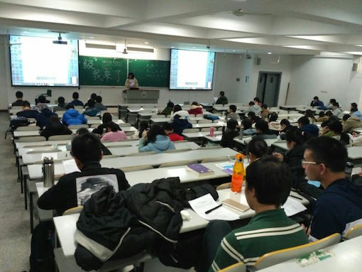 一个小时悄然流逝,陪伴化工院16级新生将近一个月的“四级我来了”活动在今晚划上了圆满的句号。结束时,全体同学自发鼓掌表示感谢,有几个同学还走上讲台和学姐交流自己取得的进步及还存在的问题,曾兰同学鼓励他们继续加油,争取四级达到600+。