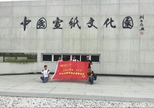 大学生暑期“三下乡”社会实践活动志愿服务团——“探访宣纸宣笔,走进非遗文化”五名成员到达安徽省宣城市泾县。通过走进泾县乌溪镇的中国宣纸文化园,了解宣纸的历史及其制作工艺。