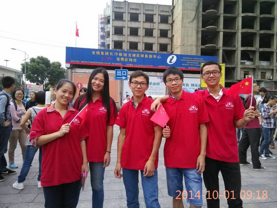 为国庆举办的升旗仪式,为建国65周年贺庆。仪式结束后,小伙伴们跟着石倩坐公交于9:30到达火车站,在火车站阿波罗商业广场,作为湖南大学的献血志愿者参加了献血活动启动仪式。整个仪式隆重而又漫长,但同学们在活动过程中都积极配合,表现出湖南大学学生应有的风貌。随着时间的流逝,在将近11:00,活动宣告结束。由于活动带来的良好影响,参与献血的人过多,同学们只好前往另一个献血点参加献血。