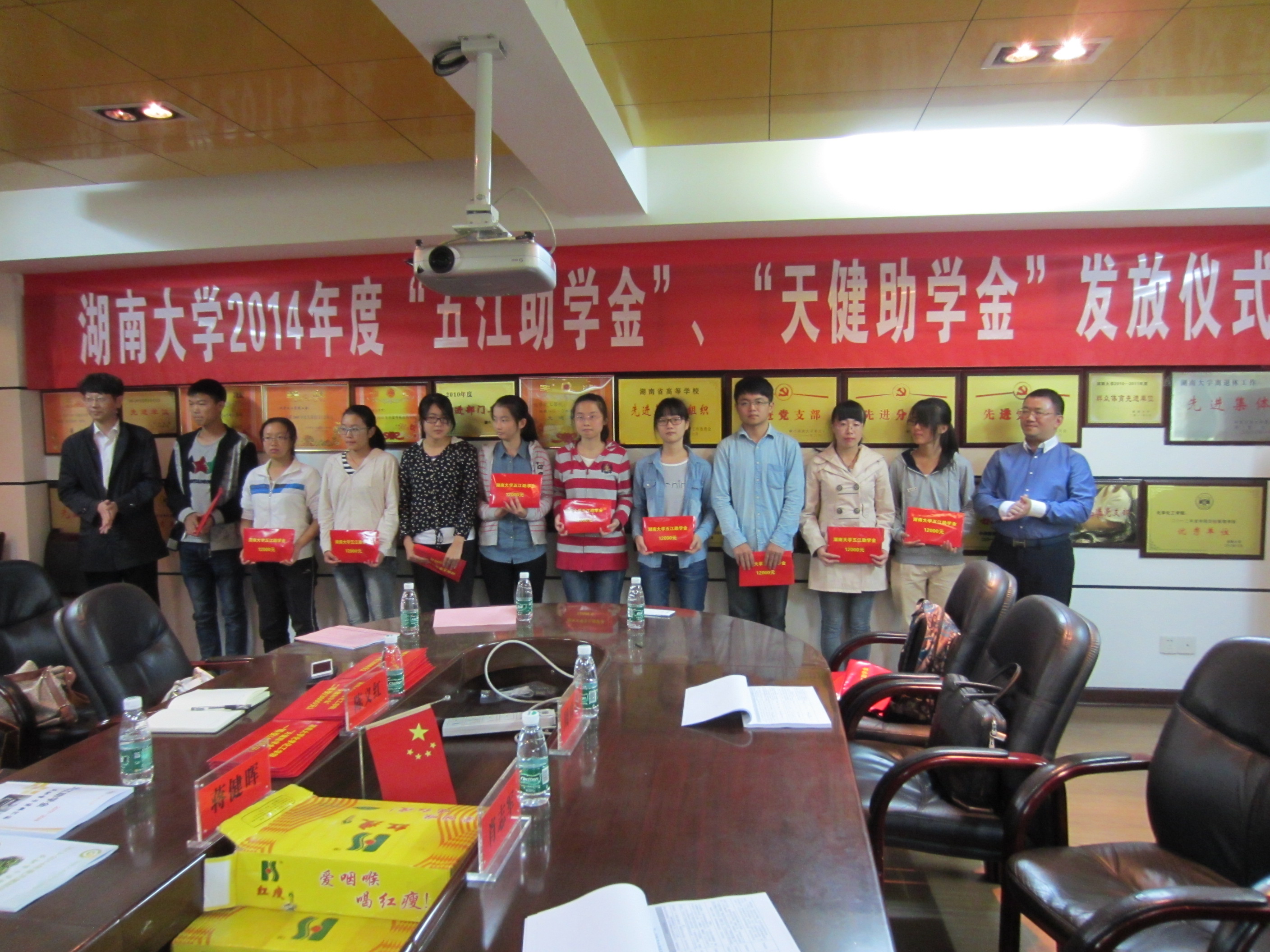 湖南大学2014年度“五江”暨“天健”助学金发放仪式圆满举行