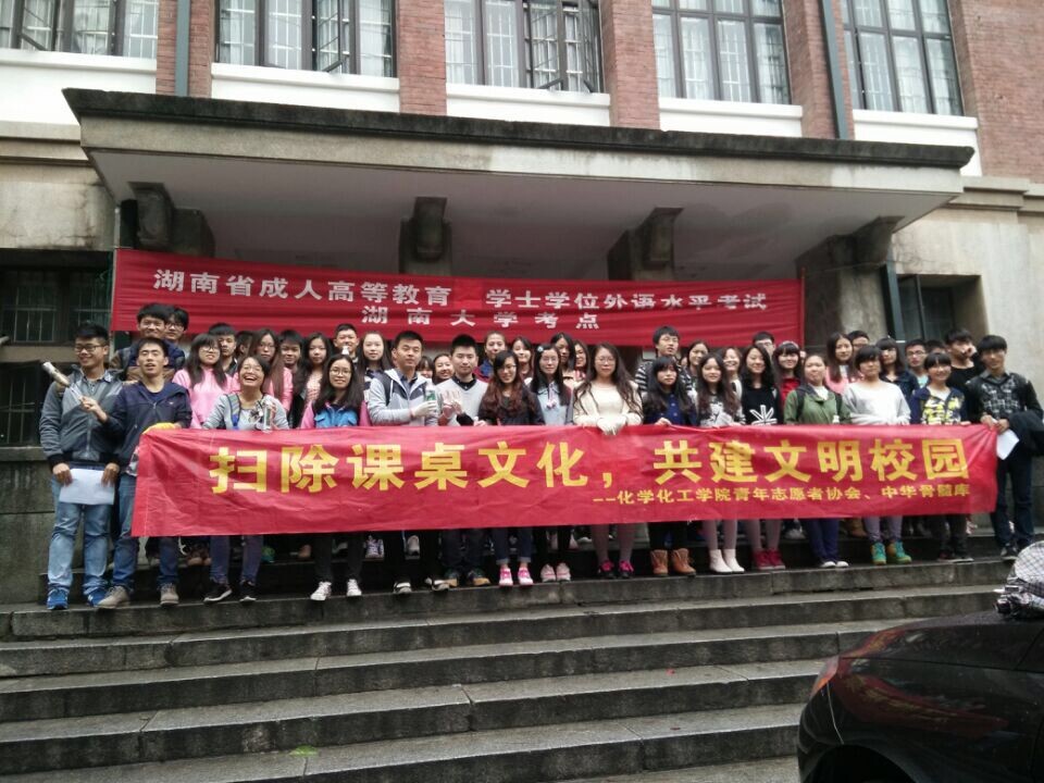 青年志愿者协会联合中华骨髓库在全校范围内开展了以“课桌大扫除”为主题的志愿者活动,得到了同学们的热烈响应。