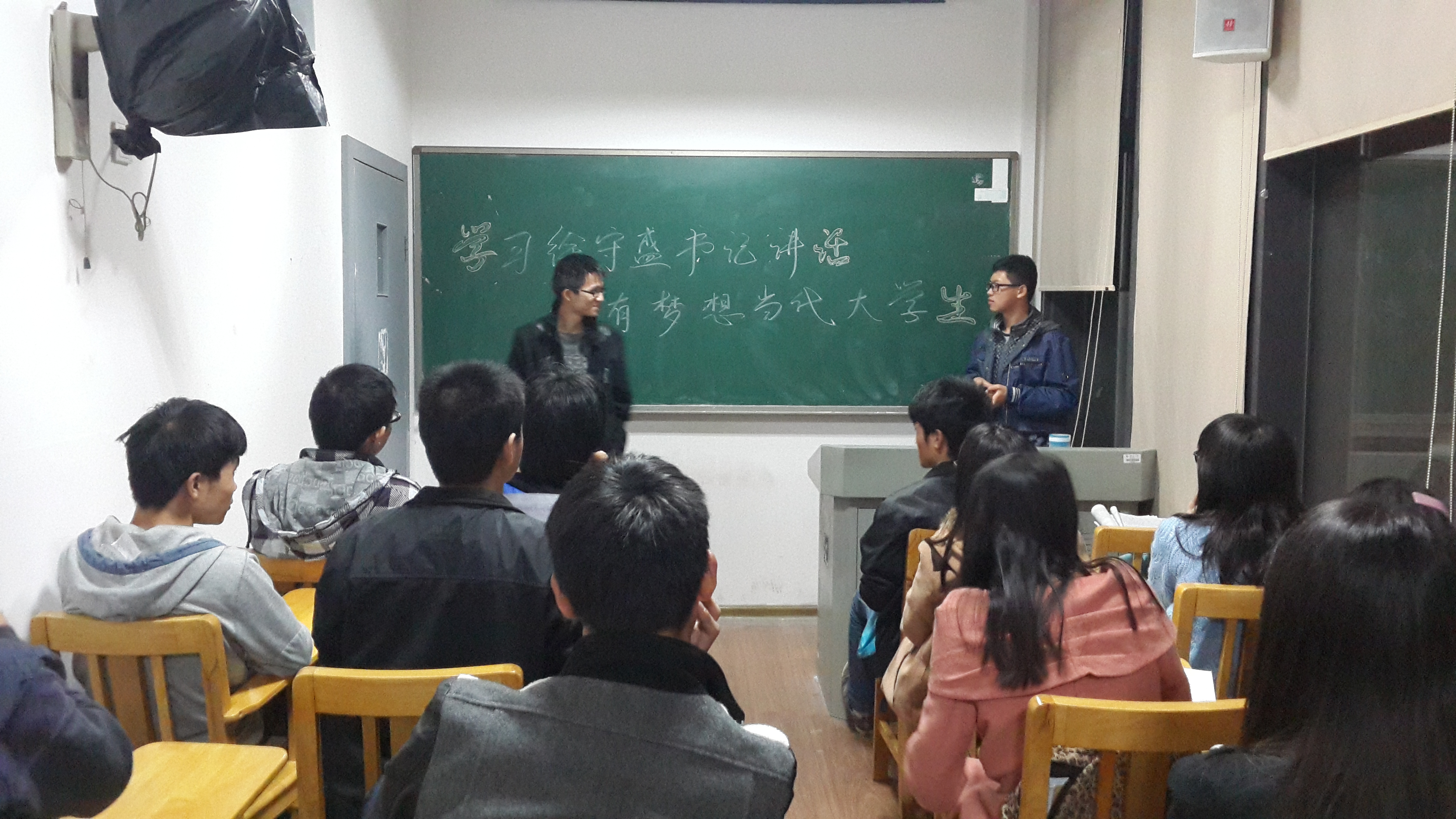 会议伊始,团支书李海婷详细地向同学们介绍了徐书记讲话精神的内容,强调了徐书记讲话中的“立德,立志,成人,成才”,传达了徐书记对同学们能立足于这个伟大的时代,自觉把个人理想志向同国家和民族的前途命运紧密相连,树立正确的人生观,刻苦钻研,掌握真才实学,积极投身创新性国家建设,在创造创新中积累经验,体现自身价值的殷切期望,让每一位到会同学都能真正了解徐书记讲话精神的真意。而后同学们也纷纷表达了自己的看法,提出了很多有价值的观点,表达了自己要学得一身文武艺,将来投身中华崛起的伟大民族复兴潮流中的决心。