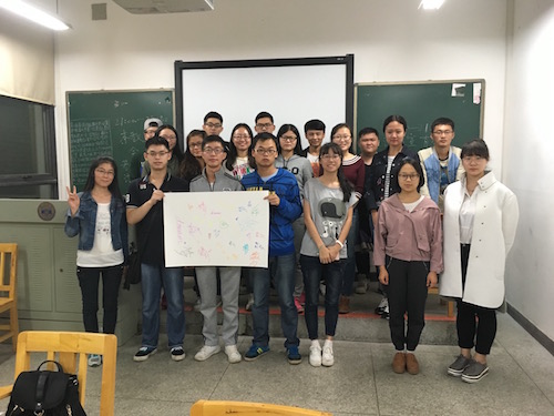 在同学们热烈的讨论氛围下,张娜娜让同学们在卡纸上写上中国梦的字样,并在背面写出自己的梦想,同学们都认真思考,郑重地在纸上留下了自己的笔迹。最后,全班同学都与这张承载着梦想的卡纸合影留念。
