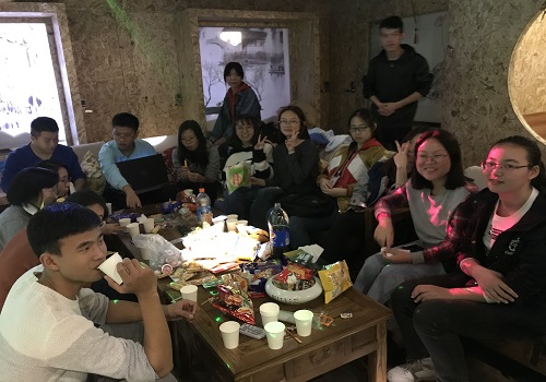 上午9点半,同学们从天马学生公寓门口出发,而在这之前,化学1701班早有一群贴心的同学们前去采购物资。在一路友好的交流中,两个班的同学们不久便到达了目的地,在部分同学于厨房紧张的准备午饭的时候,化学1601班组织委员毛彪带领其它同学玩起了击鼓传娃娃的游戏。鼓声落时,娃娃在手的同学得大方地站起身来介绍自己,还要接受一些有趣的小惩罚。通过这个小游戏,两个班的同学对对方有了初步的了解,一开始的羞涩早已消失不见,气氛变得活跃。与此同时,厨房里的小厨师们也是干得有模有样,糖醋排骨,土豆牛腩等色味俱佳的佳肴不断被端上餐桌。看着眼前让人目不暇接的菜品,同学们都迫不及待地拿起筷子,开启了这顿大餐。