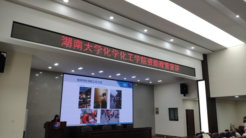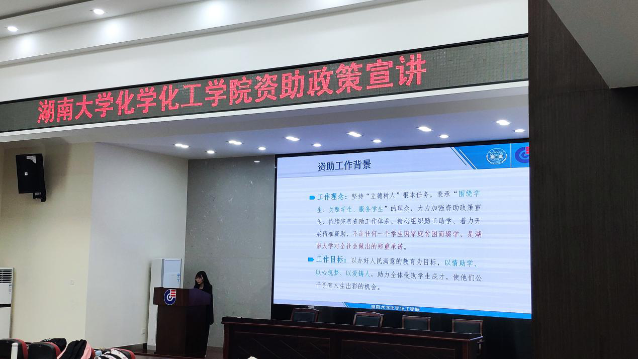 资助政策宣讲”。通过此次宣讲,新同学不仅认识到湖南大学健全的资助育人政策,也感受到了湖南大学确保不让一名学生因家庭经济困难而失学的决心。