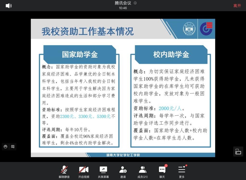 化工院爱心使者资助政策培训线上召开