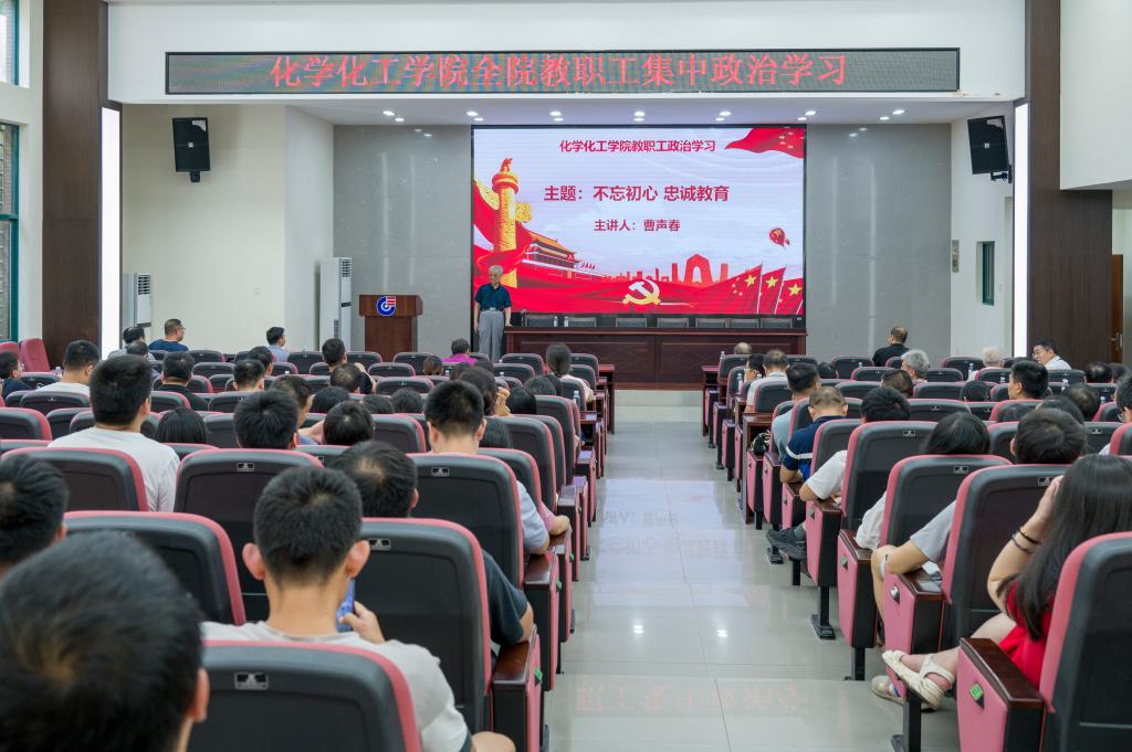 于新化工楼D区报告厅开展了2021年第十八次全体教职工集中政治学习。本次集中学习主讲嘉宾为退休教授曹声春,授课主题为《不忘初心、忠诚教育》,抢庄牛牛官方网站