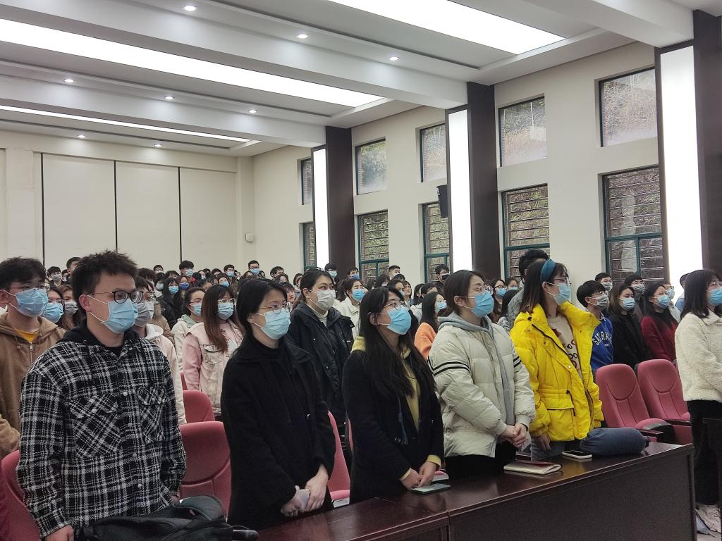 研究生在新化工楼D区报告厅集体观看全国政协十三届五次会议开幕式。