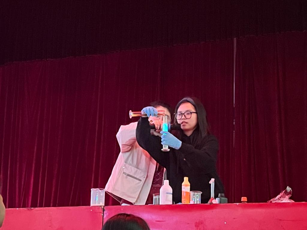 青年志愿者协会的学生在现场进行了趣味化学实验展演。