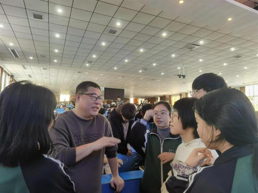 训“自强不息,厚德载物”引入话题,结合自身在美国读博的经历和在国内的教学工作经历,用幽默风趣的语言为同学们讲解了如何面对高考及进入大学后应该怎么样等问题,鼓励同学们要自信,要坚持,不要躺平,进入大学要找到自己的职业规划,不断提升自身竞争力,当你确定了你想做什么,这才是最大的动力。
