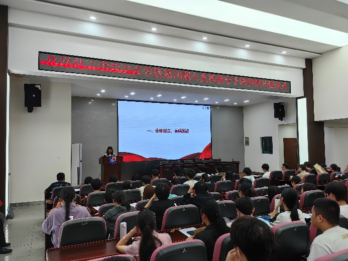 第七十六期入党积极分子培训班开班仪式。本次培训目的旨在进一步提升入党积极分子的思想政治素质,确保党员发展质量,共计200多名师生入党积极分子参加本次开班仪式。