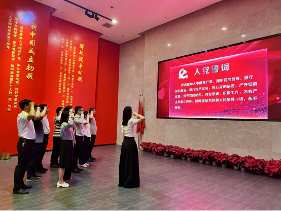 在参观完教育中心各个展区后,党员领导干部面向党旗,紧握拳头,庄严宣誓,重温入党誓词。全体党员领导干部的声音洪亮而坚定,每一个字都充满了信念与决心。