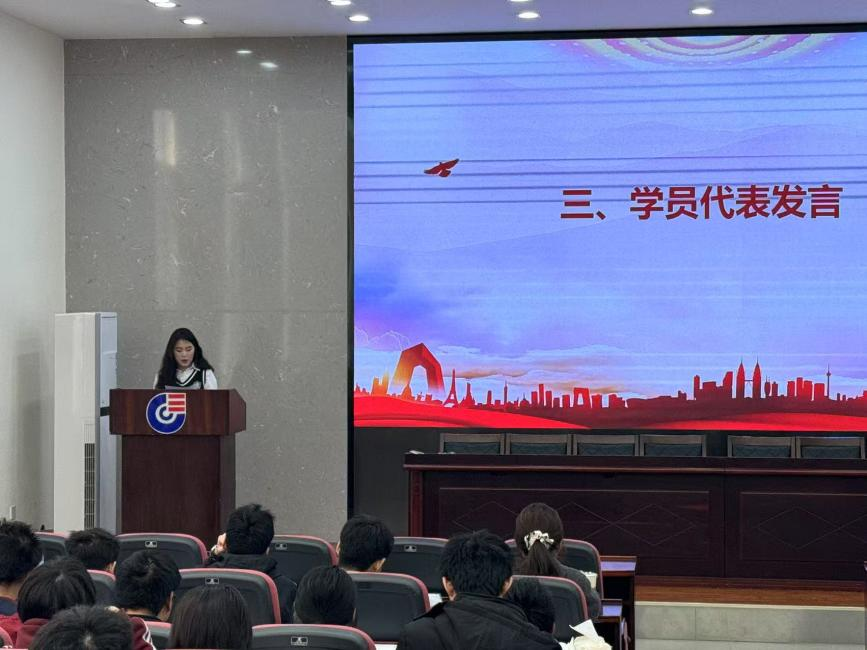 2024级化学工程与工艺2班硕士研究生高苗苗同学作为学员代表进行发言,会议上,高苗苗同学表达了对党组织的感恩之心,表示将珍惜学习机会,认真学习党的理论知识,传承红色基因,以实际行动践行党的宗旨,努力提升党性修养,争取早日成为一名合格的共产党员,为党和人民的事业不懈奋斗。