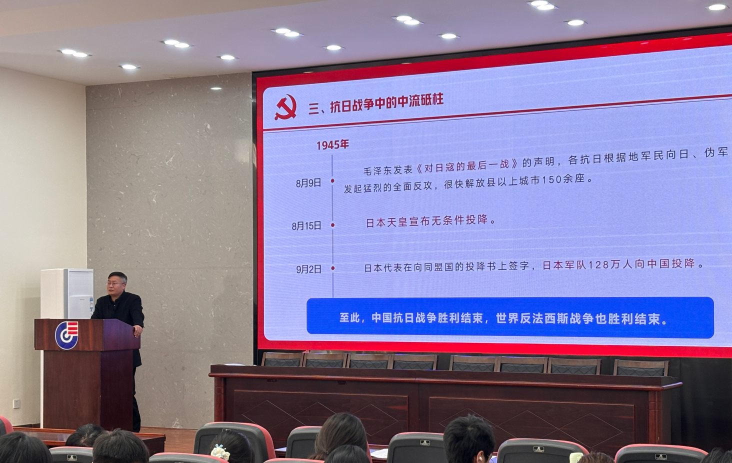 《党旗指引青春路》第二章专题于3月24日举行,陈四海老师为主讲人。陈四海老师以渊博的学识和深刻的洞察力,围绕“深化理论学习,提高政治素养”主题,为大家。从马克思、列宁的理论奠基讲起,到毛泽东、邓小平、习近平等领导人的智慧结晶,深入浅出地阐述了我国处于社会主义初级阶段的国情。用“十四个坚持”“十个明确”“十三个方面成就”“六个必须坚持”等关键词,勾勒出习近平新时代中国特色社会主义思想的丰富内涵。他还聚焦党在社会主义初级阶段的基本路线和基本纲领,强调“一个中心,两个基本点”的核心内容,并以南泥湾精神诠释“自力更生、艰苦创业”的内涵,激励青年传承红色基因,勇担时代使命。这场培训让入党积极分子们深刻领悟党的理论的科学性与时代性,为青春之路点亮思想灯塔,激励青年们在党旗指引下,为实现中华民族伟大复兴的中国梦贡献青春力量。