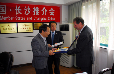 参加会议并致欢迎辞。期间,欧盟及来自法国与德国驻华大使馆的三位参赞与长沙及周边地区高等院校、科研院所和科技企业的代表,就可能展开的科学技术研究展开了深入地交流。在科学技术研究领域,中欧双方有着共同的发展理念:创新、绿色和可持续发展。双方希望能通过广泛的科技合作,共同寻找合理的科学技术发展道路,创建中欧科技合作新局面。