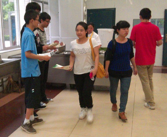 “光盘行动”志愿者在食堂门口发放宣传单,通过充分展现粮食紧缺国家和地区公民目前面临的温饱问题,引起了来往行人共鸣,大家纷纷表示要从小事做起,养成勤俭节约的良好习惯。