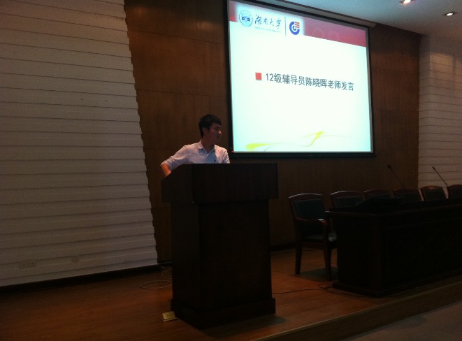 下午3时整,在大家热烈的掌声中培训大会准时召开。首先由13级辅导员赵春先老师发言,在发言中,她表达了对志愿者们不辞辛劳为学弟学妹奉献心力的感谢,同时也希望并相信志愿者们可以尽职尽责地做好迎新工作。随后,我院党委副书记陈义红老师发表讲话。陈书记为大家大致介绍了迎新工作流程和迎新注意事项。陈书记指出,作为化工院的一员,作为学长学姐,志愿者们要注意自己的言行举止,时时刻刻为新生树立榜样,展示化工学子的青春风采。接着,12级辅导员陈晓晖老师更为详细地讲解了迎新流程,再次强调了迎新注意事项,以便让志愿者们在未来3天中将工作有条不紊地顺利进行。