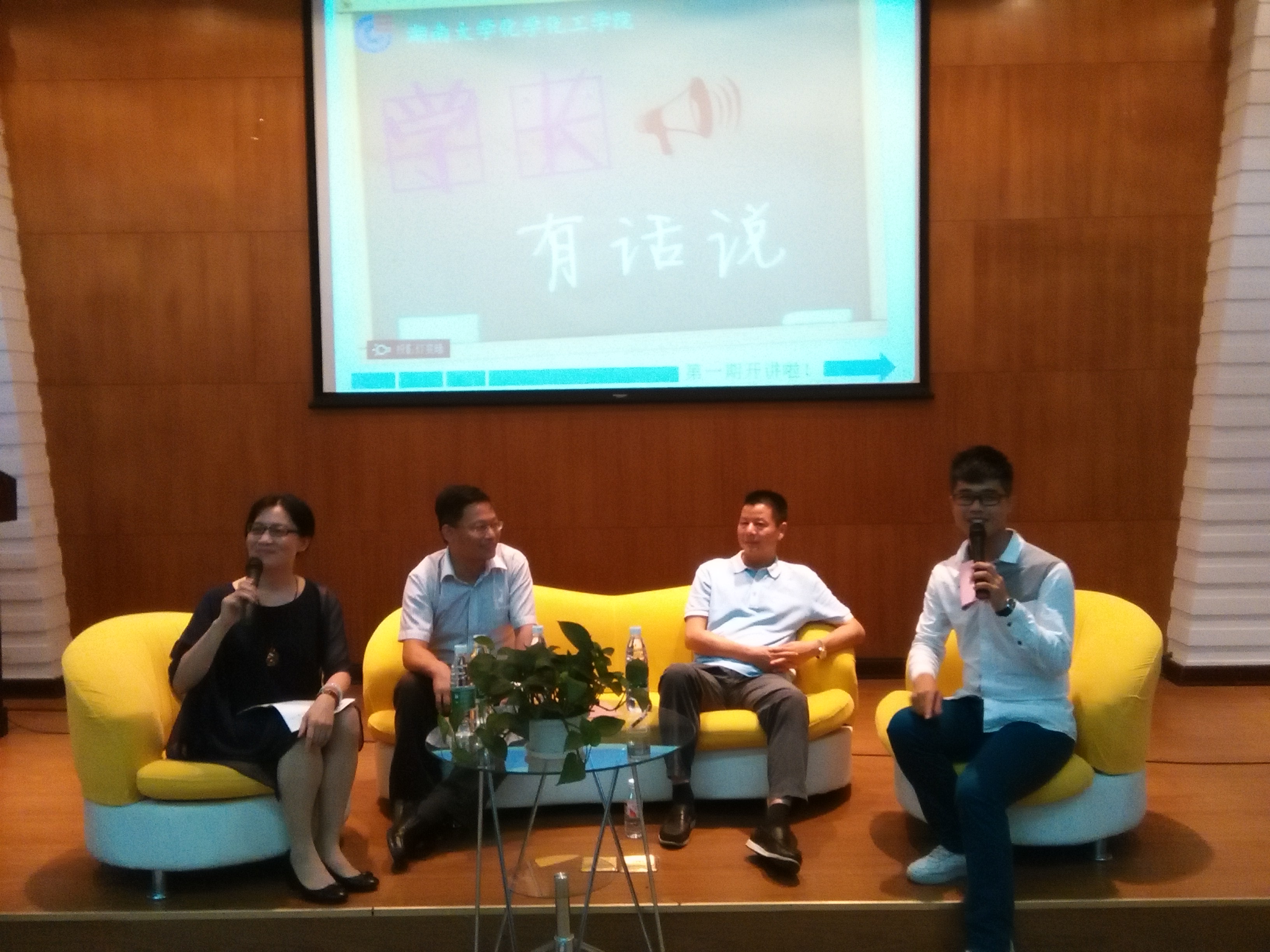 党委副书记陈义红老师、应用化学系主任刘娅莉教授、院分团委书记陈晓晖老师参加会议,访谈由吴天忍同学主持。
