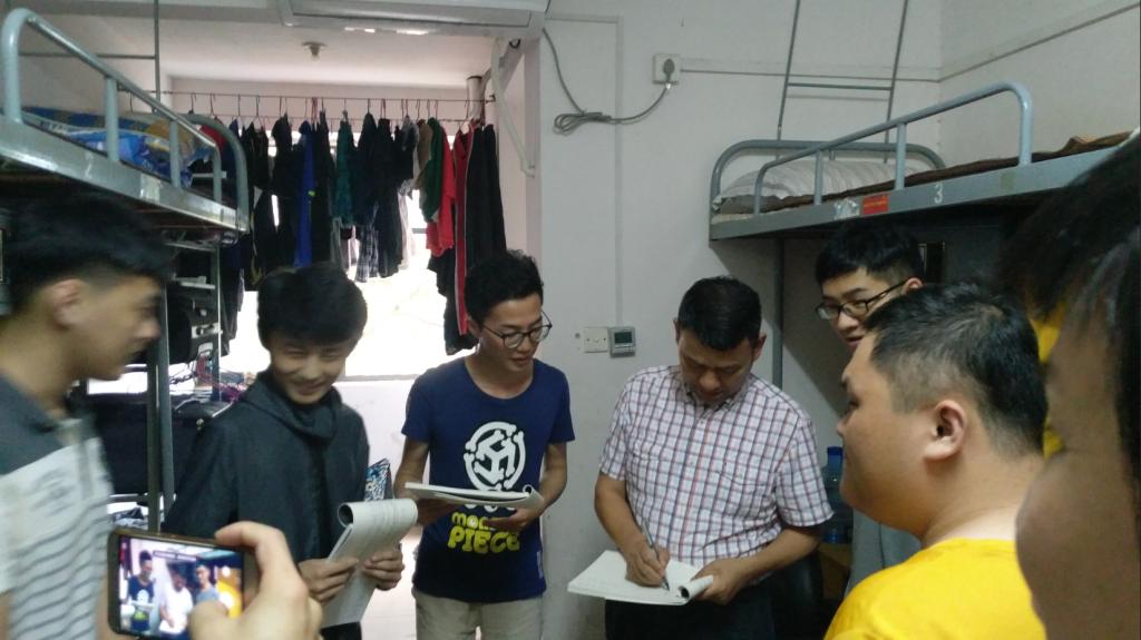在另外一间宿舍该寝室的王硕同学给谭校长送上了一副手绘人像画,谭校长看到手绘人像之后非常开心的介绍到,这是自己2004年在美国开学术会议的时候拍摄的一张照片,也是自己最喜欢的一张照片;谭校长来到了另外一间宿舍,该寝室同学全部升学,分别去往了清华深圳研究院南开大学和抢庄牛牛官方网站