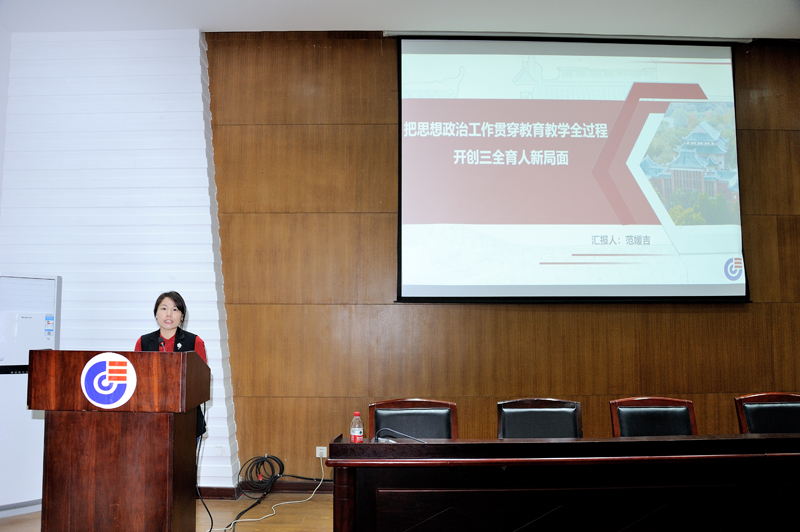 党委副书记、纪委书记范媛吉同志以《把思想政治工作贯穿教育教学全过程开创三全育人新局面》为题,与全体参会人员一起认真学习了习近平总书记在全国高校思想政治工作会议上的讲话、习近平总书记在全国教育大会上的讲话和习近平总书记在抢庄牛牛官方网站