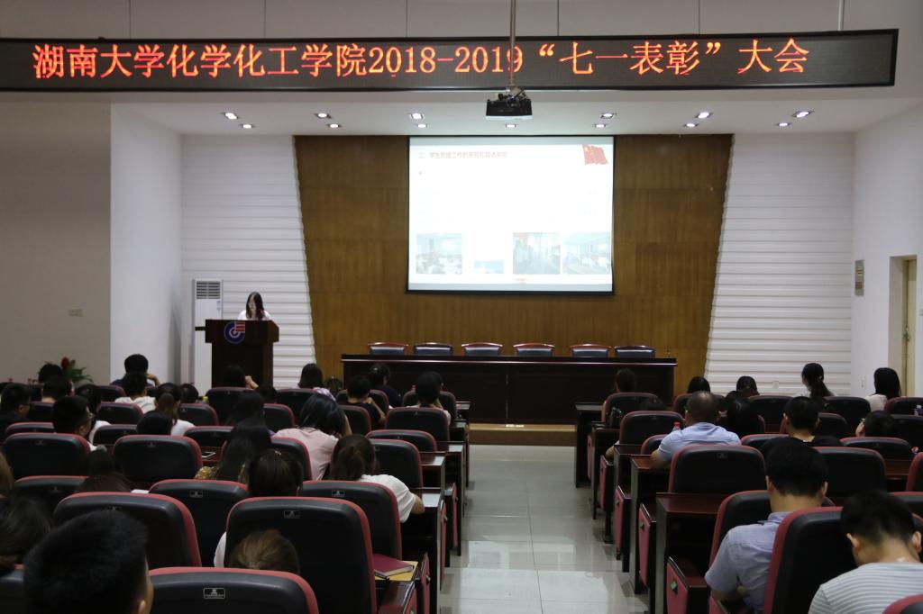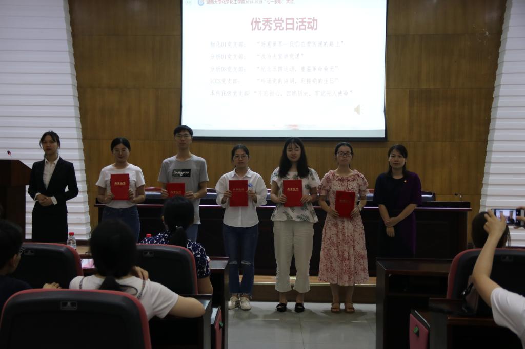 委员会关于2018-2019年度“七·一”表彰的决定》。随后,出席会议的领导和老师为受表彰的集体和个人依次颁奖。先进集体和优秀个人代表依次上台进行展示,列举了各自在学生党建工作中的举措,以及发展中取得的荣誉,均表示需在不断学习中树立远大理想、在基层实践中练就过硬本领、在社会服务中担当时代责任,汇报了如何成长为有战斗力的党支部和有影响力的优秀学生党员的心得体会。