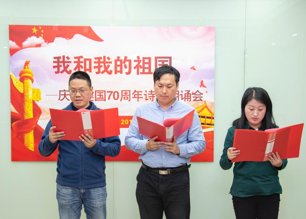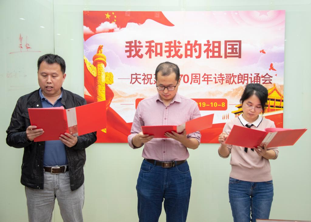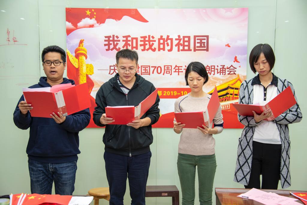 化学系第一党支部在B区106会议室开展了一次别开生面的“我和我的祖国”主题党日活动,即庆祝中华人民共和国成立70周年诗歌朗诵会。